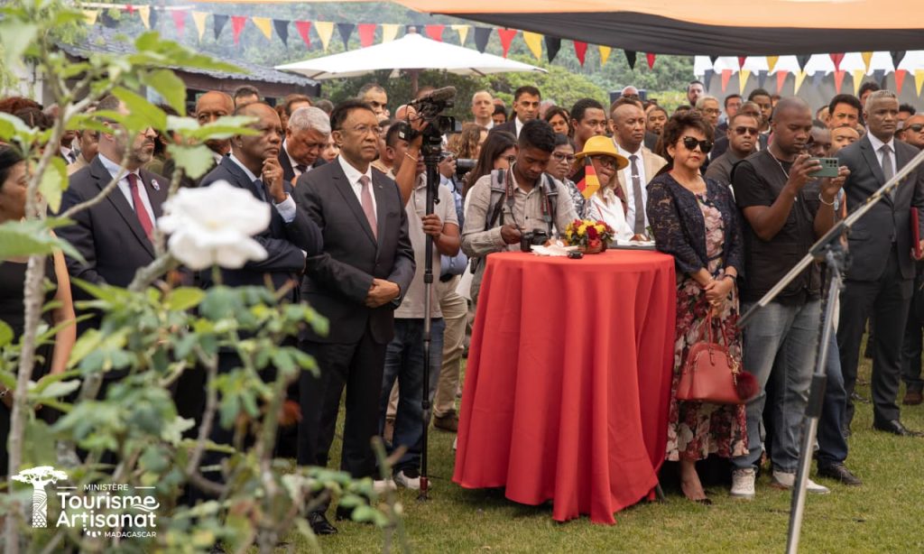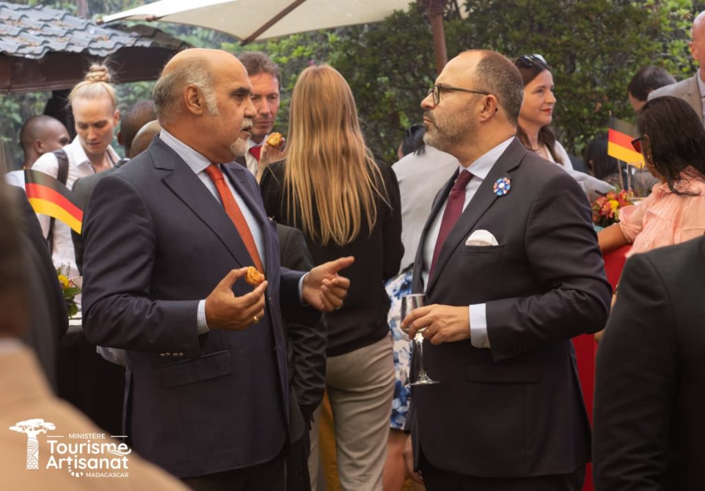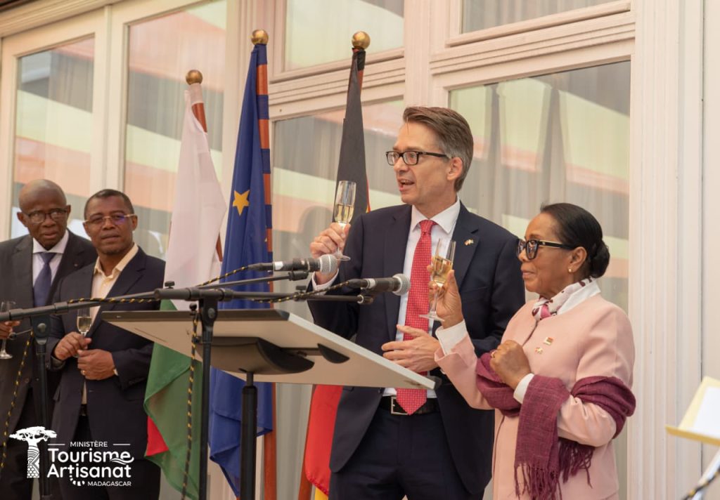 A l’occasion de la célébration de la journée de l’Unité allemande, à la Villa Berlin Ambatoroka, ce jeudi 13 novembre, Madame la Ministre du Tourisme et de l’Artisanat, Lucie VOLOLONIAINA ( Lily Rafaralahy) a honoré l’invitation de SEM Oliver Knoerich, Ambassadeur d’Allemagne.