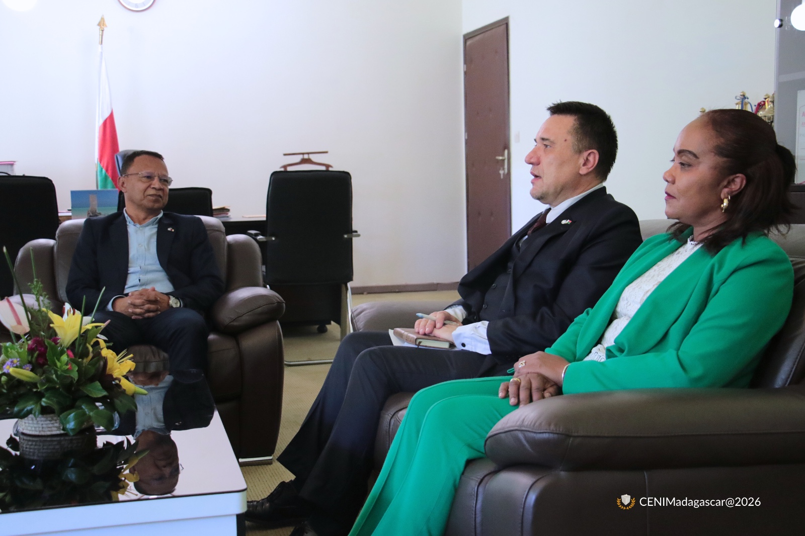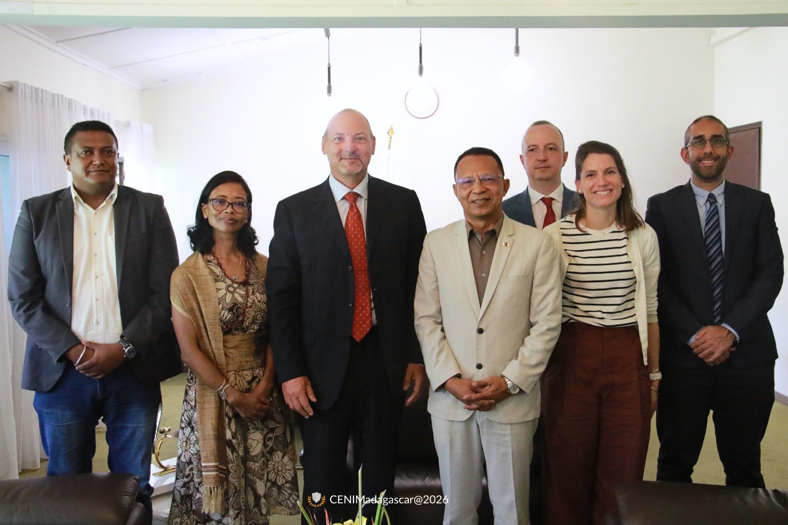 Une délégation de l’UE, présidée par Madame Elisabeth VAN RIJCKVORSEL a été ainsi reçue par le Président de la Commission Electorale Nationale Indépendante (CENI) et les membres du Bureau Permanent, en présence du staff technique, le vendredi 30 janvier 2026, auprès de son siège sis à Alarobia.