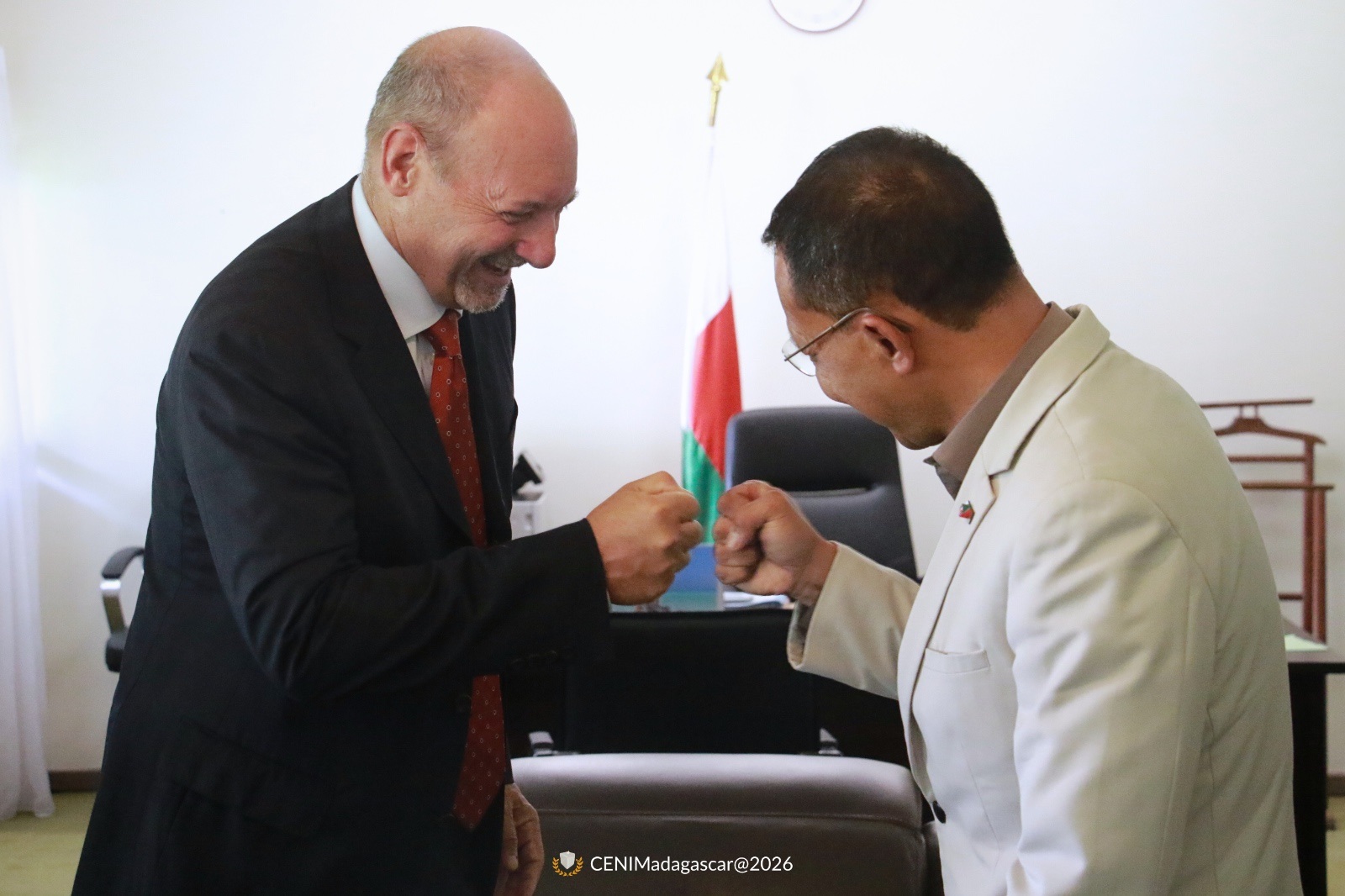 Suite à la demande formulée par l’État Malagasy pour accompagner le processus de refondation, Son Excellence Monsieur l’Ambassadeur Traian Laurent HRISTEA, Représentant de l’OIF au niveau de l’Océan Indien est venu rencontrer Monsieur Thierry RAKOTONARIVO, Président de la Commission Électorale Nationale Indépendante de Madagascar à Alarobia Siège de la CENI.
